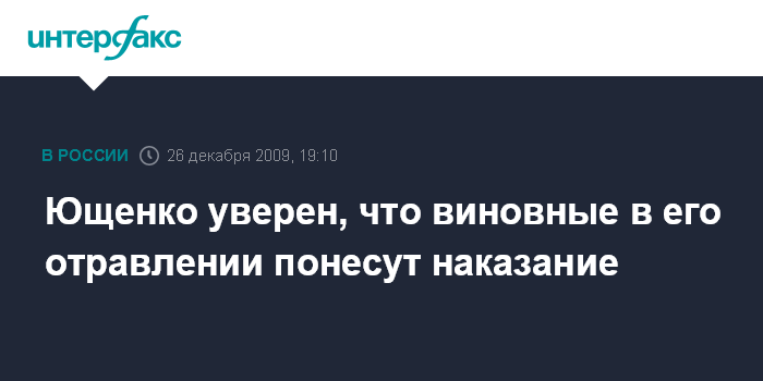 Москва. 26 декабря. INTERFAX.RU - Президент Украины Виктор Ющенко не сомневается, что участники его отравления понесут ответственность.