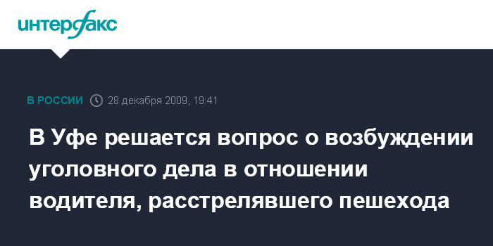 В Уфе решается вопрос о возбуждении уголовного дела в отношении водителя, расстрелявшего пешехода