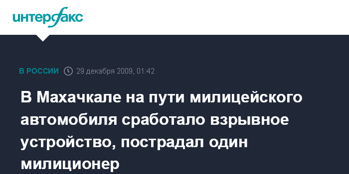 В Махачкале на пути милицейского автомобиля сработало взрывное устройство, пострадал один милиционер