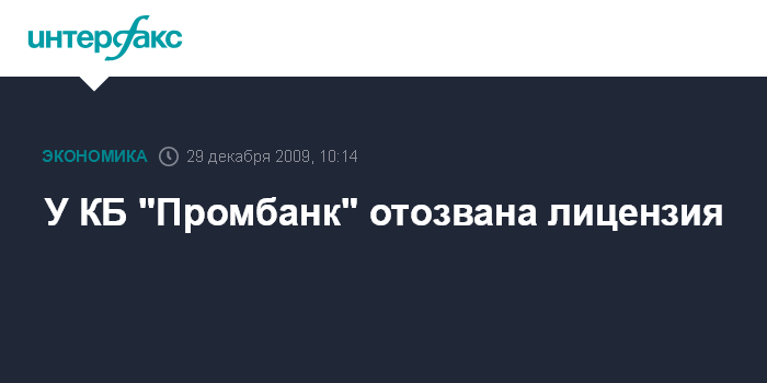 Москва. 29 декабря. INTERFAX.RU – Центробанк РФ отозвал лицензию на осуществление банковских операций у КБ "Банк развития промышленности" (КБ "Промбанк") (ОАО, г. Москва), говорится в сообщении департамента внешних и общественных связей Банка России. Лицензия была отозвана в связи с неоднократным нарушением банком закона "О противодействии легализации (отмыванию) доходов, полученных преступным путем, и финансированию терроризма".