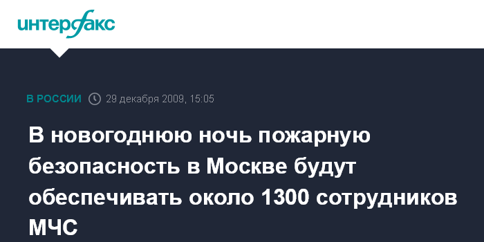 Москва. 29 декабря. INTERFAX.RU - Московские пожарные и спасатели, а также городские службы с 21 декабря перешли на усиленный вариант несения службы в преддверии Нового года, сообщил замначальника главного управления по надзорной деятельности МЧС России по Москве Сергей Аникеев. "Ситуация серьезная. Все службы комплекса городского хозяйства, МЧС и другие оперативные службы должны мобилизоваться в преддверии новогодних праздников, что в настоящее время и сделано. С 21 декабря все службы перешли на усиленный вариант несения службы", - сказал Аникеев на пресс-конференции в Москве во вторник. Он уточнил, что в Новогоднюю ночь в Москве на дежурстве будут находиться около 1300 сотрудников столичного МЧС. "Дополнительно будут осуществляться дежурства наших сотрудников на всех 612 объектах, где в период праздников будут проходить массовые мероприятия", - сказал Аникеев.