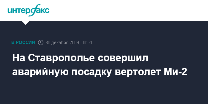Ростов-на-Дону. 30 декабря. - ИНТЕРФАКС-ЮГ - Вертолет Ми-2 совершил вынужденную посадку в Кочубеевском районе Ставропольского края.