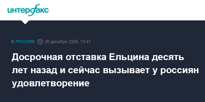 Досрочная отставка Ельцина десять лет назад и сейчас вызывает у россиян удовлетворение