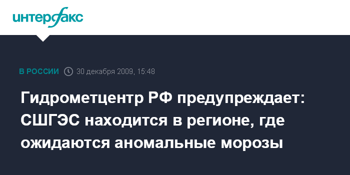 Гидрометцентр РФ предупреждает: СШГЭС находится в регионе, где ожидаются аномальные морозы