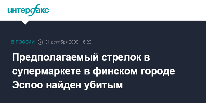 Предполагаемый стрелок в супермаркете в финском городе Эспоо найден убитым