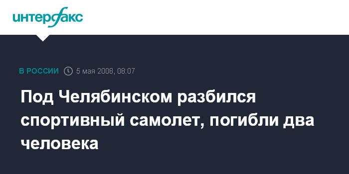 Челябинск. 5 мая. INTERFAX.RU - Спортивный двухместный самолет с двумя людьми на борту разбился вчера вечером на Калачевском аэродроме в Челябинской области.