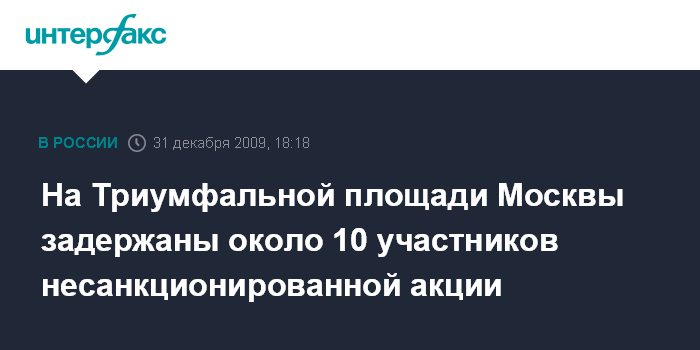 Москва. 31 декабря. INTERFAX.RU - Сотрудники милиции после многократных предупреждений в адрес членов оппозиции о том, что их акция на Триумфальной площади в Москве является несанкционированной, несмотря на отказ членов оппозиции разойтись, начали задерживать наиболее активных участников.