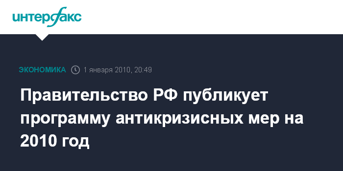 Правительство РФ публикует программу антикризисных мер на 2010 год