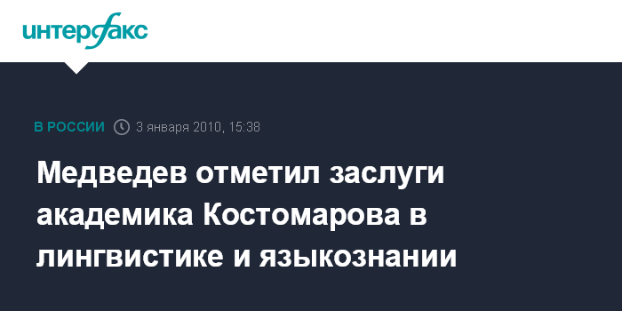 Медведев отметил, что широкое общественное признание В.Костомарову "принесла деятельность по распространению русского языка как средства международного общения".