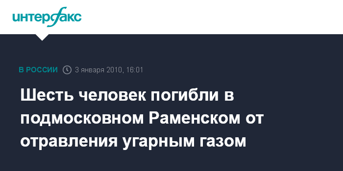 Москва. 3 января. INTERFAX.RU – В подмосковном Раменском шесть человек погибли, четверо пострадали в результате отравления угарным газом в частном жилом доме.