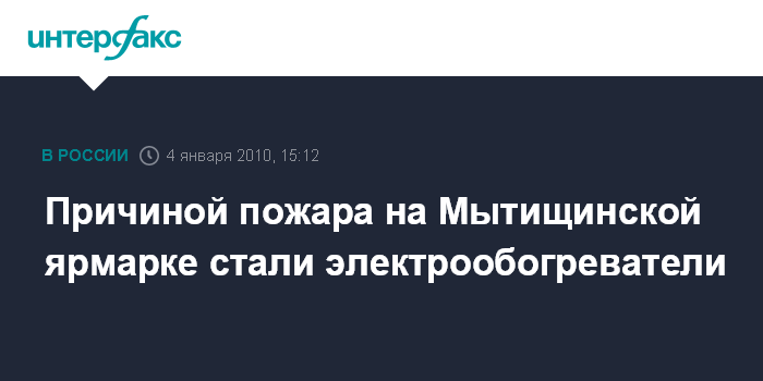 Москва. 4 января. INTERFAX.RU - Возгорание на Мытищинской строительной ярмарке произошло в результате использования электронагревательных приборов, сообщил в понедельник "Интерфаксу" источник в правоохранительных органах.