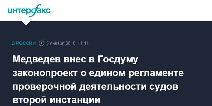 Медведев внес в Госдуму законопроект о едином регламенте проверочной деятельности судов второй инстанции