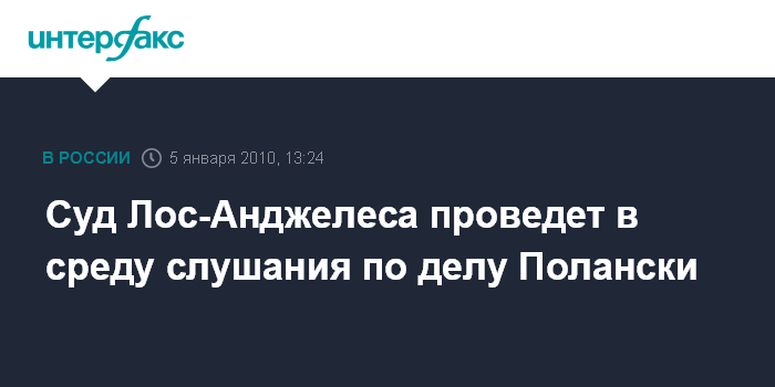 Суд Лос-Анджелеса проведет в среду слушания по делу Полански