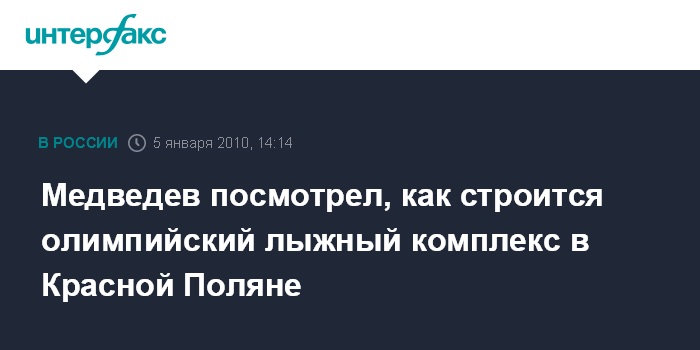 Кратко обсудив олимпийскую тематику, немного покатавшись на лыжах, Д.Медведев в сопровождении А.Ткачева, Д.Козака и В.Устинова спустился к одному из строящихся олимпийских объектов - лыжному комплексу. Как пояснил президенту вице-премьер Д.Козак, строящийся комплекс предназначен для соревнований по биатлону и лыжных гонок, предполагаемый срок окончания строительства комплекса - конец 2011 года.