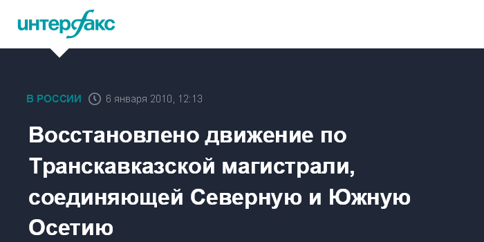 Владикавказ. 6 января. INTERFAX.RU - Движение автотранспорта по Транскавказской магистрали в Северной Осетии восстановлено в обоих направлениях. "Транскам открыт для движения автотранспорта с 12:00 мск среды", - сообщил агентству "Интерфакс-Юг" представитель дорожных служб республики. По словам собеседника агентства, дорога открыта в связи с улучшением погодных условий. "Движение восстановлено сразу после получения разрешения от дорожных и противолавинных служб Северной Осетии", - сказал источник.