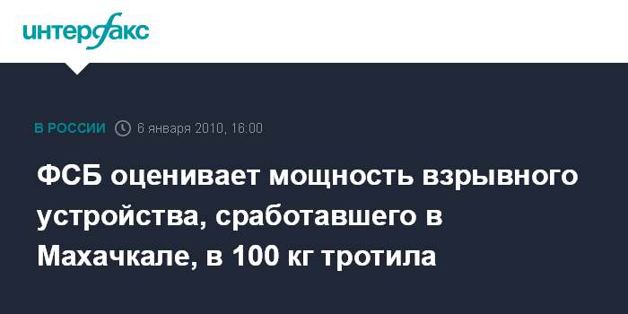 ФСБ оценивает мощность взрывного устройства, сработавшего в Махачкале, в 100 кг тротила