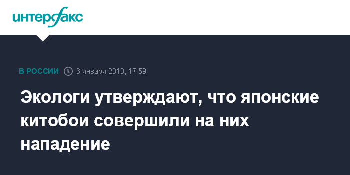 Лондон. 6 января. INTERFAX.RU - Активисты-экологи, занимающиеся проблемой сохранения популяции китов, обвинили японское китобойное судно в нападении на свой катер в ходе противостояния у побережья Антарктиды. Как сообщает британская телерадикорпорация Би-Би-Си, представители общества охраны обитателей океана Sea Shepherd ("Морской пастух") утверждают, что их катер "Ади Джил", напоминающий внешним видом самолет-невидимку, был взят на таран у Бухты Содружества. В результате у судна оказалась отрезана носовая часть, однако всех шестерых членов экипажа удалось спасти.