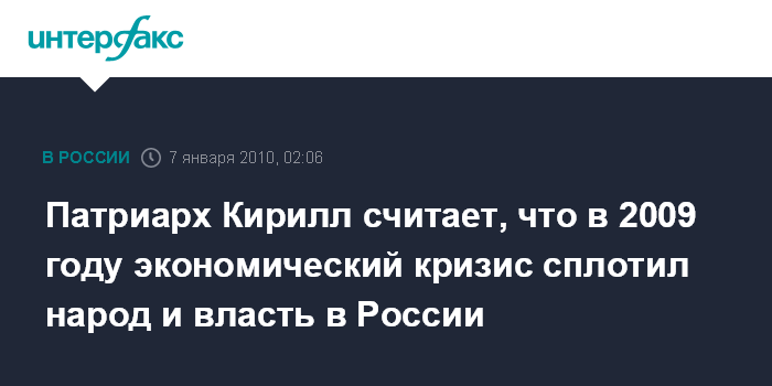 Патриарх Кирилл считает, что в 2009 году экономический кризис сплотил народ и власть в России