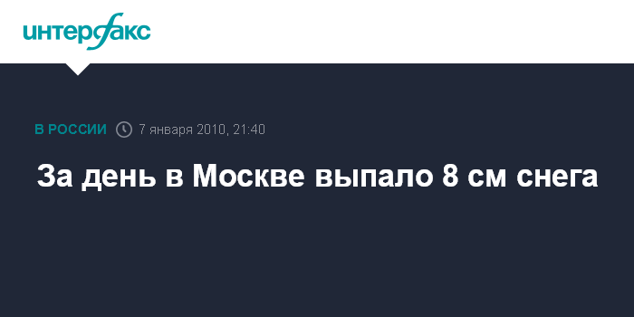 Москва. 7 января. ИНТЕРФАКС-МОСКВА - С 12 часов дня до 21:00 уровень осадков в Москве в виде снега составил 8 см, сообщили "Интерфаксу" в департаменте жилищно-коммунального хозяйства и благоустройства города в четверг.
