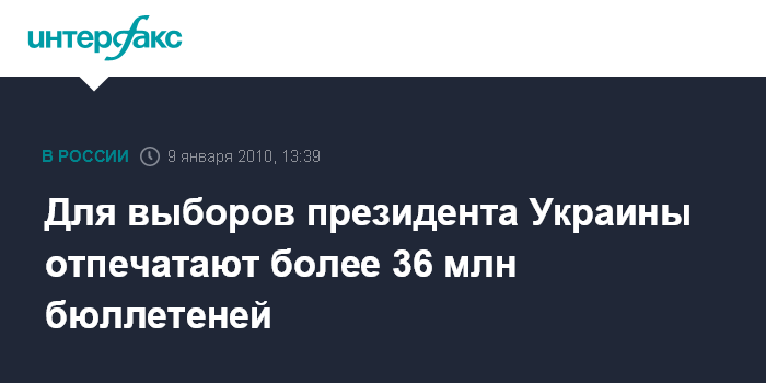 Киев. 9 января. INTERFAX.RU - Государственное предприятие "Полиграфический комбинат "Украина" в субботу планирует завершить изготовление бюллетеней для голосования на выборах президента Украины 17 января, сообщил директор предприятия Валентин Музыка на пресс-конференции в субботу в ходе презентации на предприятии избирательного бюллетеня. "Все свои обязательства полиграфкомбинат "Украина" перед Центральной избирательной комиссией выполнил, и Центризбирком выполнил свои обязательства по предварительной оплате расходов, связанных с изготовлением избирательных бюллетеней", - отметил В.Музыка. В свою очередь заместитель председателя ЦИК Украины Жанна Усенко-Черная напомнила, что в субботу истекает последний срок изготовления бюллетеней для голосования 17 января. Всего полиграфкомбинат "Украина" отпечатает 36 млн. 916 тыс 740 бюллетеней.