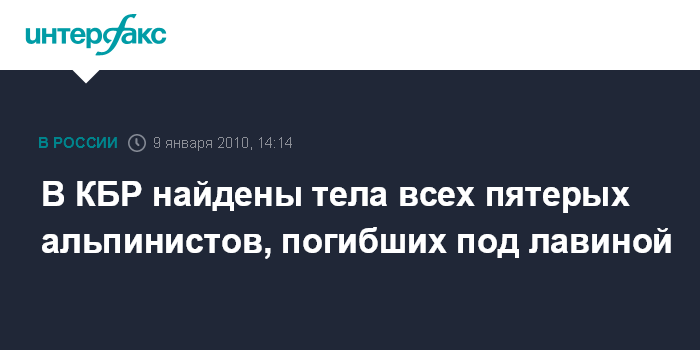 Ростов-на-Дону. 9 января. INTERFAX.RU - Спасатели обнаружили тела всех пяти альпинистов, оказавшихся под лавиной в горах Кабардино-Балкарии. "К 14:05 мск субботы найдены тела всех альпинистов, попавших под лавину в высокогорном районе Кабардино-Балкарии", - сообщил агентству "Интерфакс-Юг" представитель пресс-службы Южного регионального центра МЧС РФ. По его словам, поисковая операция завершена.