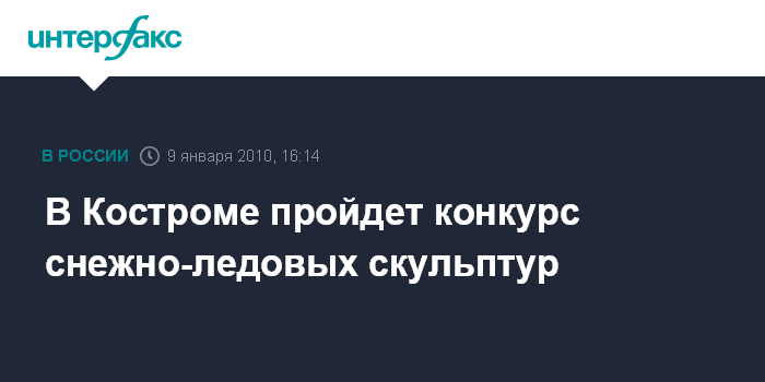 Кострома. 9 января. INTERFAX.RU - В Костроме с 11 по 13 января на главной площади города состоится фестиваль-конкурс снежно-ледовых скульптур "Кострома - зимняя сказка", сообщили "Интерфаксу" в пресс-службе губернатора. "Соревнования будут проходить по двум номинациям: "Снежная скульптура" и "Ледовая скульптура". В них можно принять участие, как в одиночку, так и командой, состав которой не более десяти человек. Возрастные ограничения - до 18 лет - установлены только для тех, кто будет работать со льдом. Темы ледовых скульптур - Новый год, Рождество Христово и бренд "Кострома и Берендеево царство - родина Снегурочки".