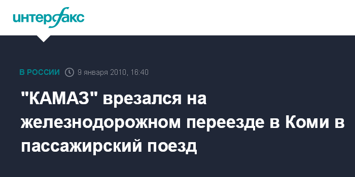 "КАМАЗ" врезался на железнодорожном переезде в Коми в пассажирский поезд