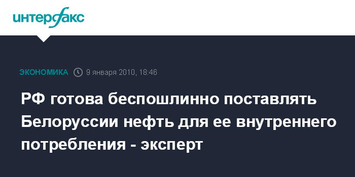РФ готова беспошлинно поставлять Белоруссии нефть для ее внутреннего потребления - эксперт