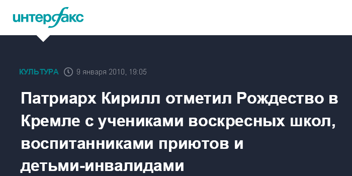 Патриарх Кирилл отметил Рождество в Кремле с учениками воскресных школ, воспитанниками приютов и детьми-инвалидами