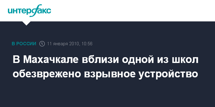 Москва. 11 января. INTERFAX.RU - Мощное взрывное устройство обезврежено в понедельник в Махачкале специалистами УФСБ России по Дагестану на улице Маячная в 15 м от средней школы №3.