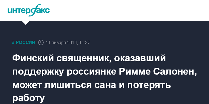 Финский священник, оказавший поддержку россиянке Римме Салонен, может лишиться сана и потерять работу