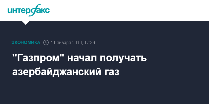 Москва. 11 января. INTERFAX.RU - "Газпром" начал получать газ из Азербайджана. Как заявил председатель правления "Газпрома" Алексей Миллер, "начало 2010 года ознаменовалось очень важным событием - впервые "Газпром" стал закупать природный газ в Азербайджане".