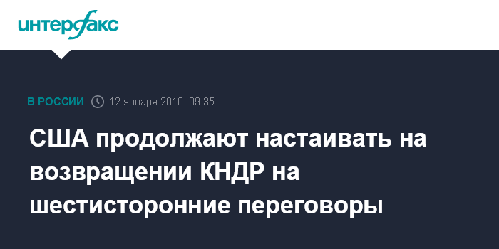 Москва. 12 января. INTERFAX.RU - Решение спорных вопросов с КНДР станет возможным только при условии возвращения этой страны на шестисторонние переговоры по денуклеаризации Корейского полуострова, заявил представитель госдепартамента США Филипп Кроули.