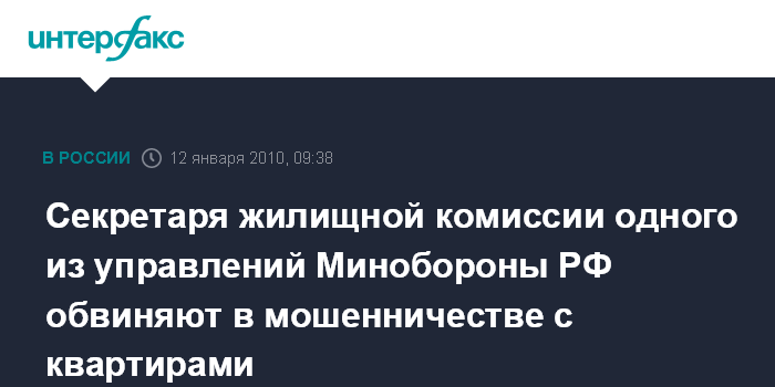 Cекретаря жилищной комиссии одного из управлений Минобороны РФ обвиняют в мошенничестве с квартирами