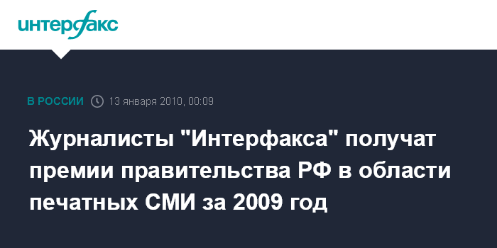 Журналисты "Интерфакса" получат премии правительства РФ в области печатных СМИ за 2009 год