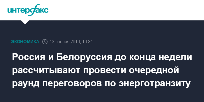 Москва. 13 января. INTERFAX.RU – Россия и Белоруссия намерены до конца недели провести очередной раунд переговоров по вопросам поставок электроэнергии в Белоруссию и энерготранзита через ее территорию в страны Балтии и Калининградскую область, сообщил "Интерфаксу" представитель российского энергоэкспортера ОАО "Интер РАО ЕЭС".