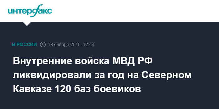 Внутренние войска МВД РФ ликвидировали за год на Северном Кавказе 120 баз боевиков