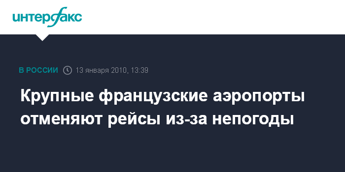 Париж. 13 января. INTERFAX.RU - Сложные погодные условия стали причиной отмены в среду многочисленных авиарейсов в крупнейших аэропортах Франции.