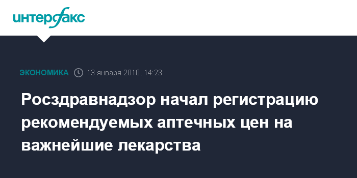 Москва. 13 января. INTERFAX.RU - Росздравнадзор приступил к регистрации отпускных цен на жизненно необходимые и важнейшие лекарственные препараты (ЖНВЛС).