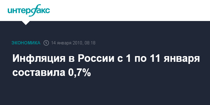 Москва. 14 января. INTERFAX.RU - Инфляция в РФ с 1 по 11 января 2010 года составила 0,7%, сообщил Росстат.