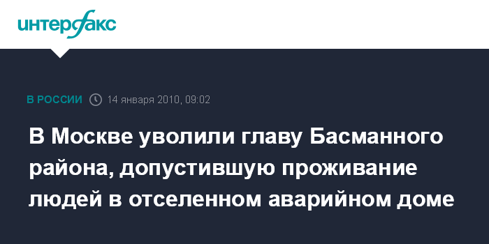 В Москве уволили главу Басманного района, допустившую проживание людей в отселенном аварийном доме