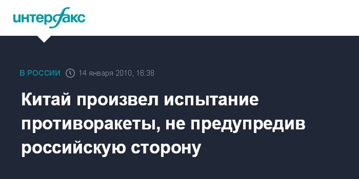 Китай произвел испытание противоракеты, не предупредив российскую сторону
