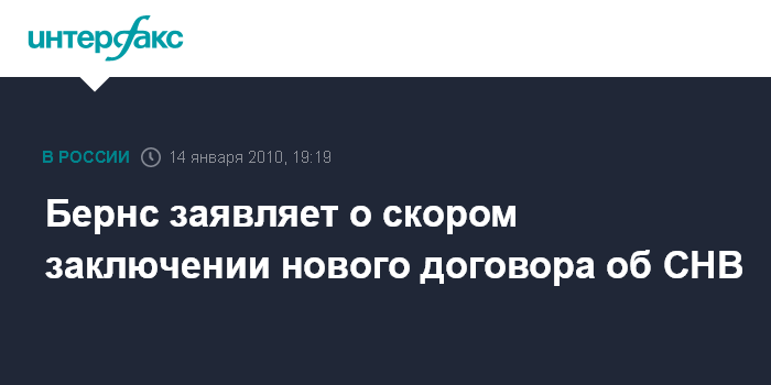 Москва. 14 января. INTERFAX.RU - Россия и США находятся накануне подписания нового договора об СНВ, заявил замгоссекретаря США Уильям Бернс, находящийся в Москве для переговоров с российским руководством.