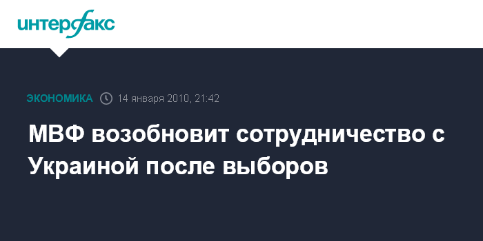 Киев. 14 января. INTERAFX.RU - Сотрудничество Международного валютного фонда (МВФ) с Украиной в рамках программы stand-by возобновится после завершения президентских выборов, надеется глава МВФ Доминик Стросс-Канн.