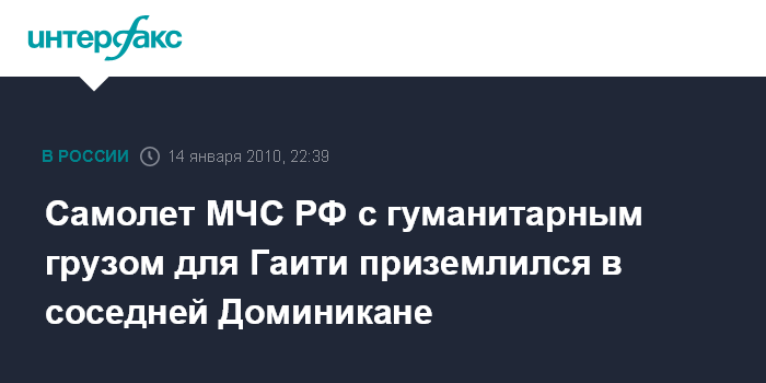 Самолет МЧС РФ с гуманитарным грузом для Гаити приземлился в соседней Доминикане