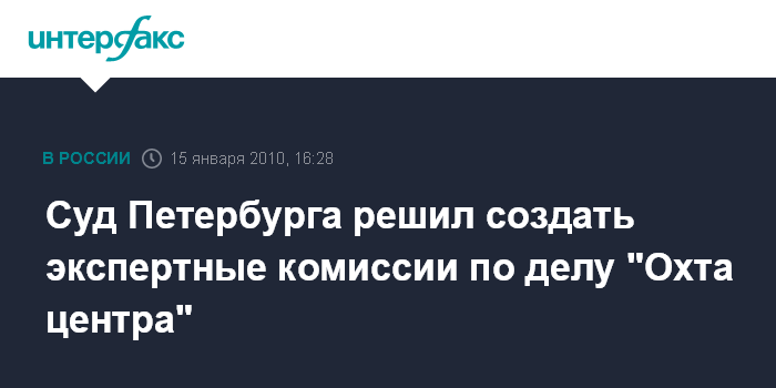 Москва. 15 января. INTERFAX.RU – Смольнинский суд Петербурга на заседании в пятницу принял решение о создании экспертных комиссий в рамках дела о законности предоставления разрешения на отклонение по высоте при строительстве доминанты общественно-делового района "Охта центр".