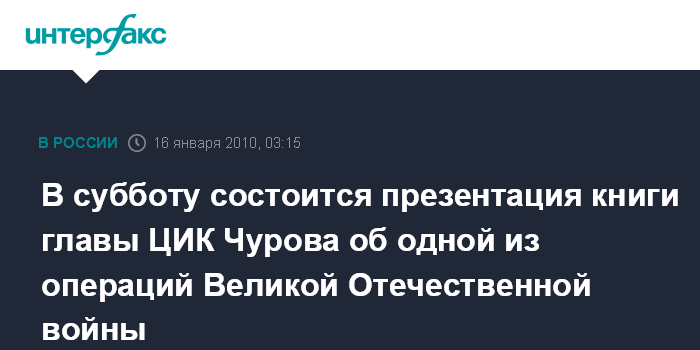 В субботу состоится презентация книги главы ЦИК Чурова об одной из операций Великой Отечественной войны