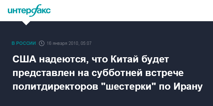 США надеются, что Китай будет представлен на субботней встрече политдиректоров "шестерки" по Ирану