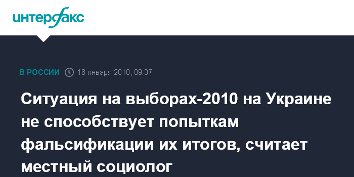Ситуация на выборах-2010 на Украине не способствует попыткам фальсификации их итогов, считает местный социолог