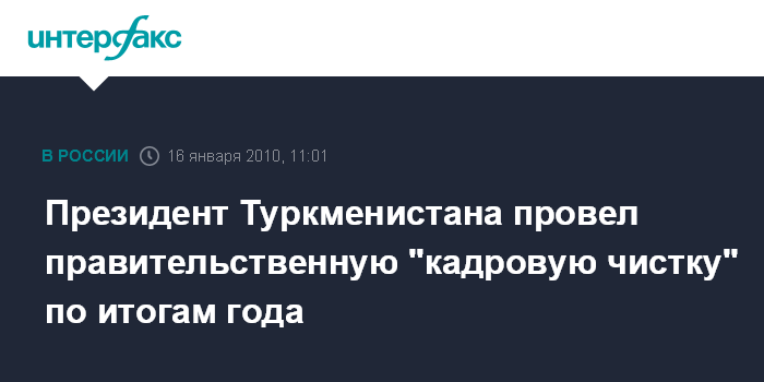 Ашхабад. 16 января. INTERFAX.RU - Президент Туркменистана Гурбангулы Бердымухамедов отстранил от должности двух министров - нефтегазовой промышленности и минеральных ресурсов, а также текстильной промышленности. Заменен мэр столицы - Ашхабада. Итогам 2009 года было посвящено состоявшееся накануне расширенное заседание правительства, в ходе которого Г.Бердымухамедов подписал ряд указов и постановлений, в том числе по кадровым вопросам. Все документы (около 100 указов, постановлений и распоряжений) опубликованы в субботу в центральных газетах страны.